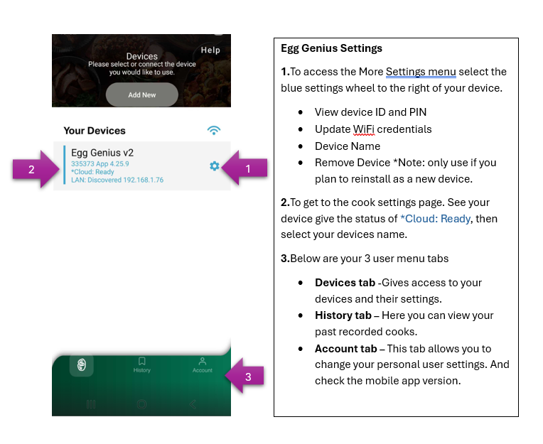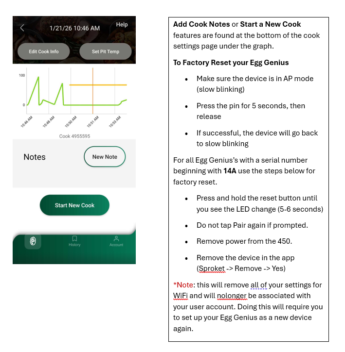 The instructions below help a user navigate the settings for an Egg Genius smoker controller.